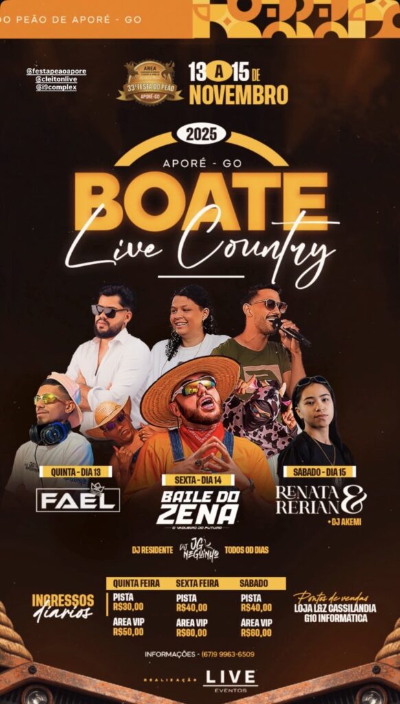 BOATE LIVE COUNTRY EM APORÉ GOIÁS Gazeta 11/11/2025 Aporé - GO, Últimas Notícias Leave a comment 89 Views Related Articles PREFEITURA MUNICIPAL DE CASSILÂNDIA INSTALA NOVAS PLACAS DE SINALIZAÇÃO NO SALTO DO RIO APORÉ 20 horas ago CAMPANHA DO AGASALHO EM APORÉ 20 horas ago GRANDE CAVALGADA EM APARECIDA DO TABOADO 20 horas ago Share Facebook Twitter Stumbleupon LinkedIn Pinterest