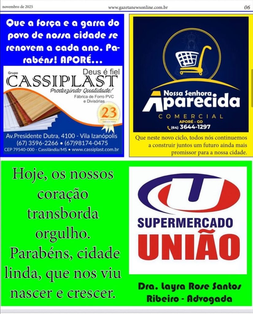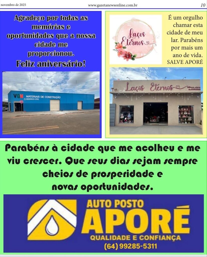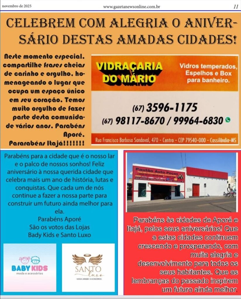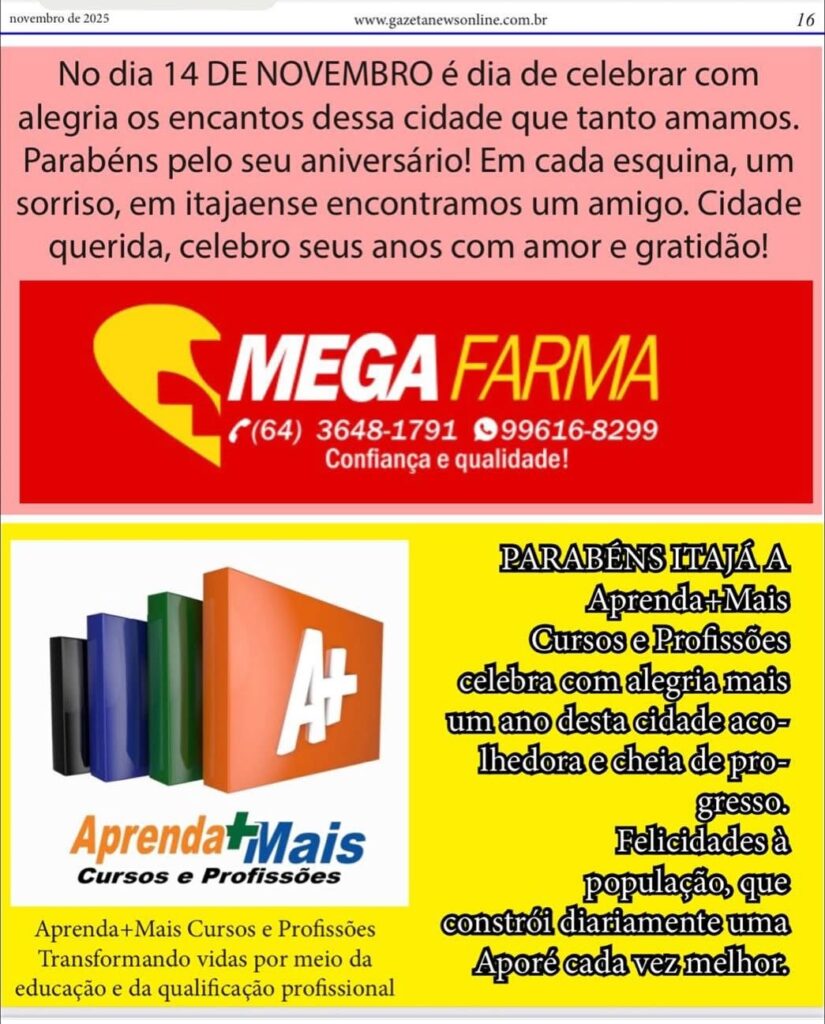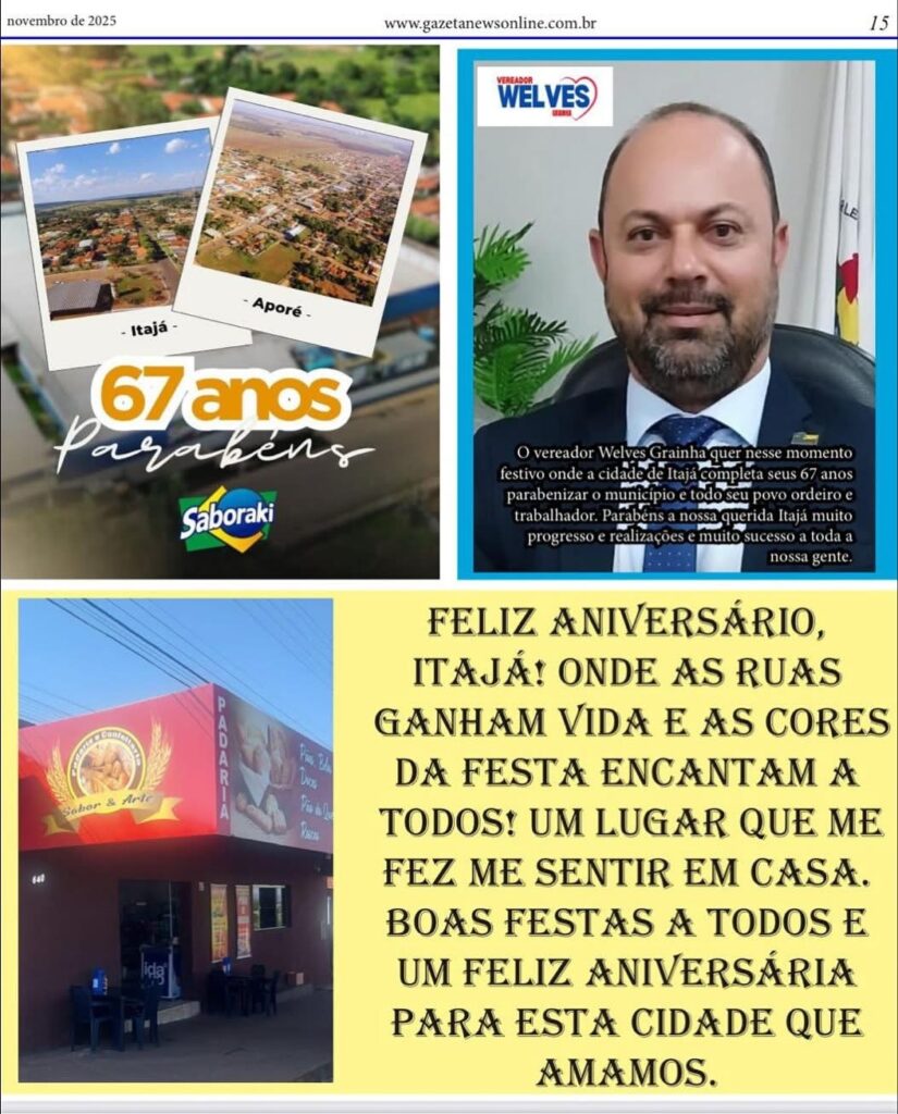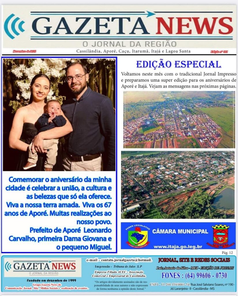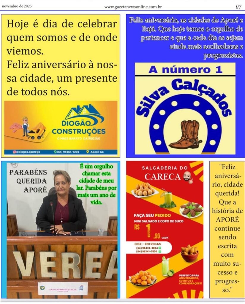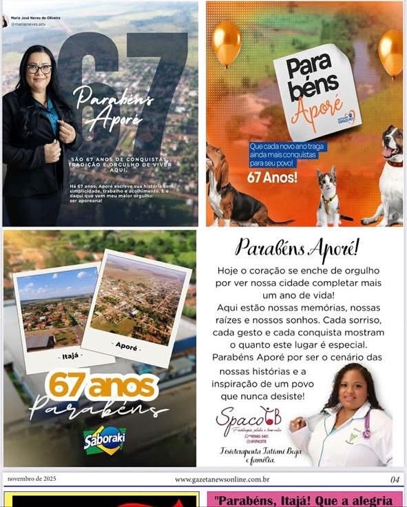 Em celebração ao aniversário de Aporé em Itajá Gazeta News preparou essa super edição especial digital e impressa com todo carinho e apoio das duas comunidades para saudar a sua gente e as cidades pela passagem de seus respectivos aniversários que se dá no dia de hoje. Parabéns Itajá e parabéns Aporé.