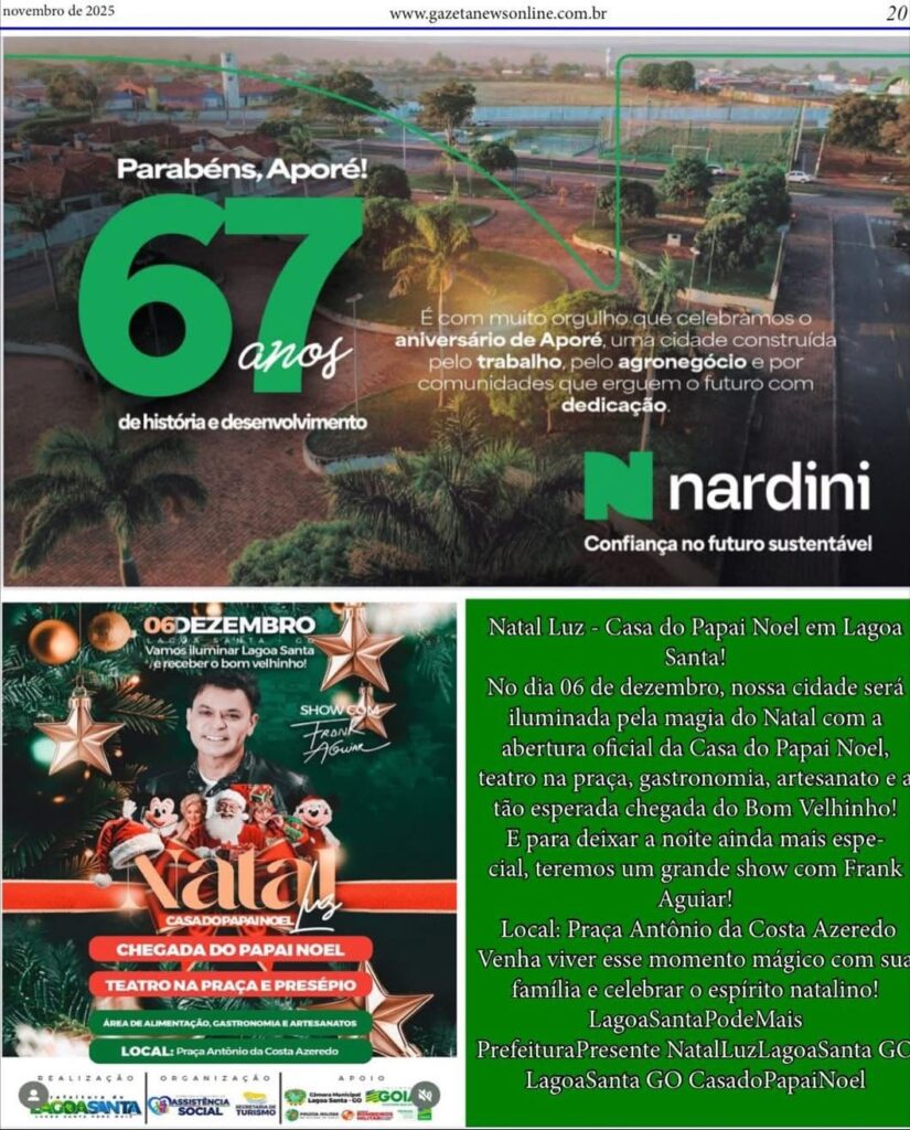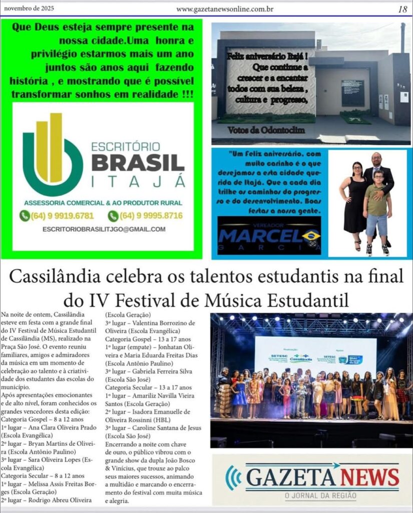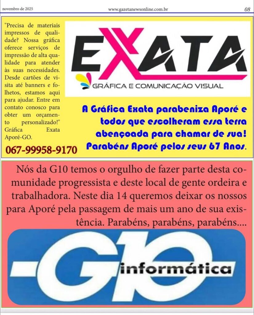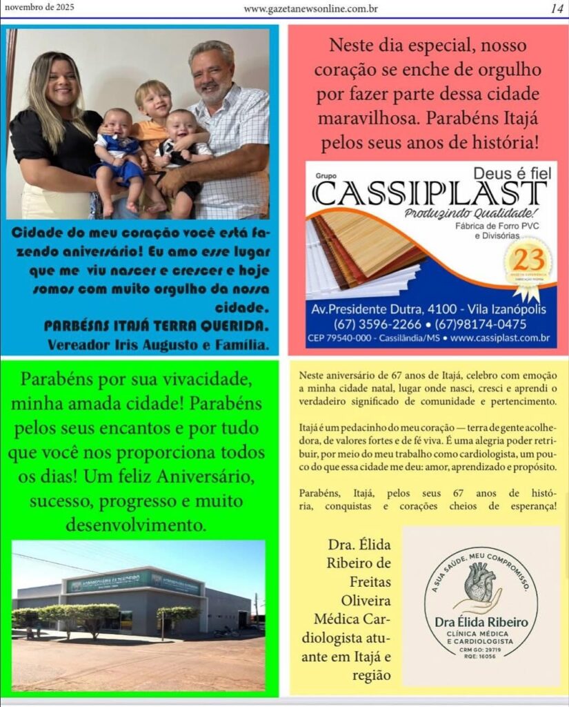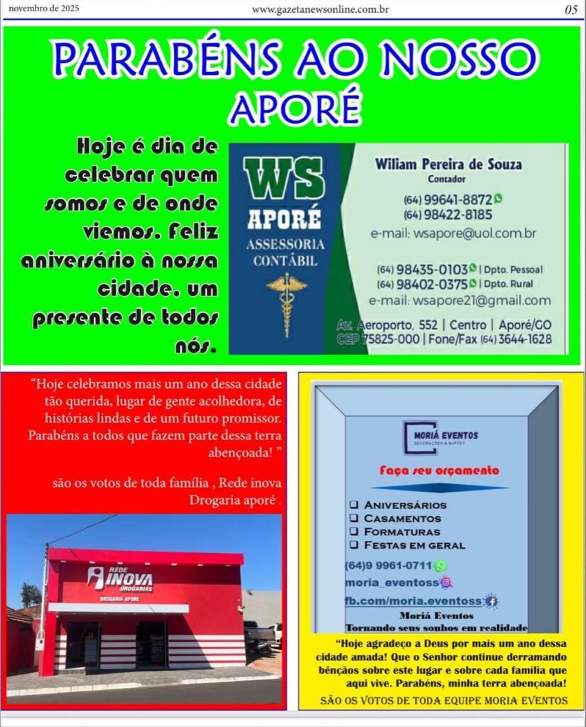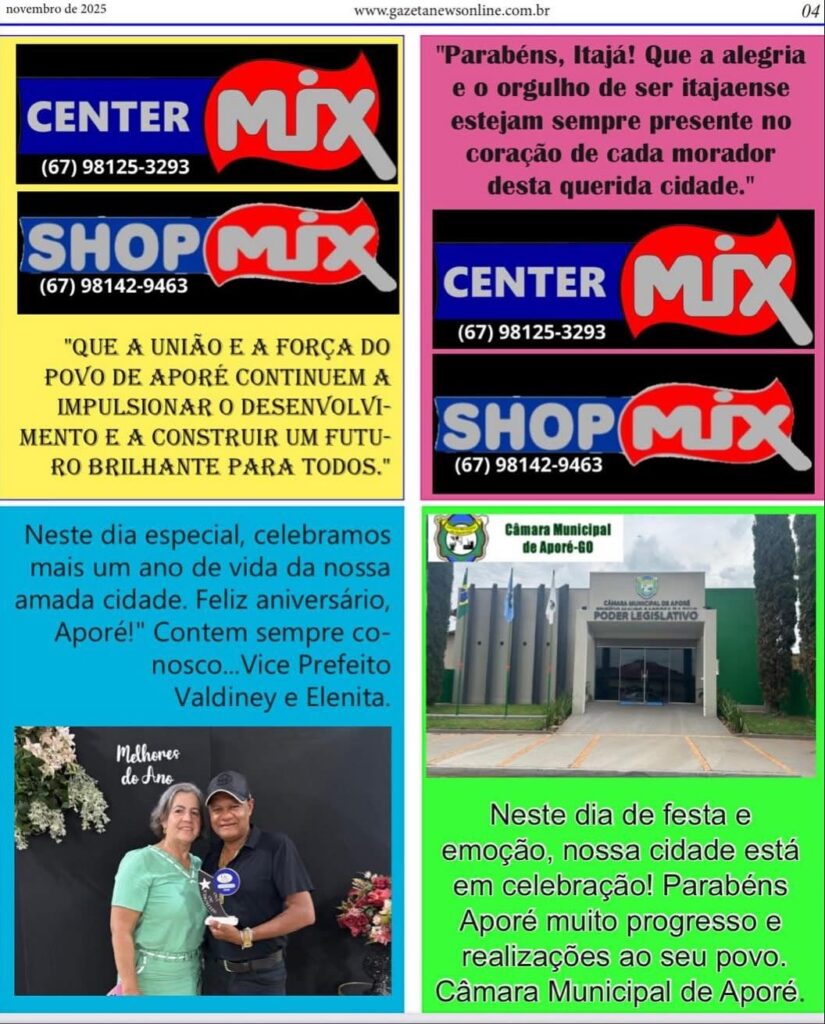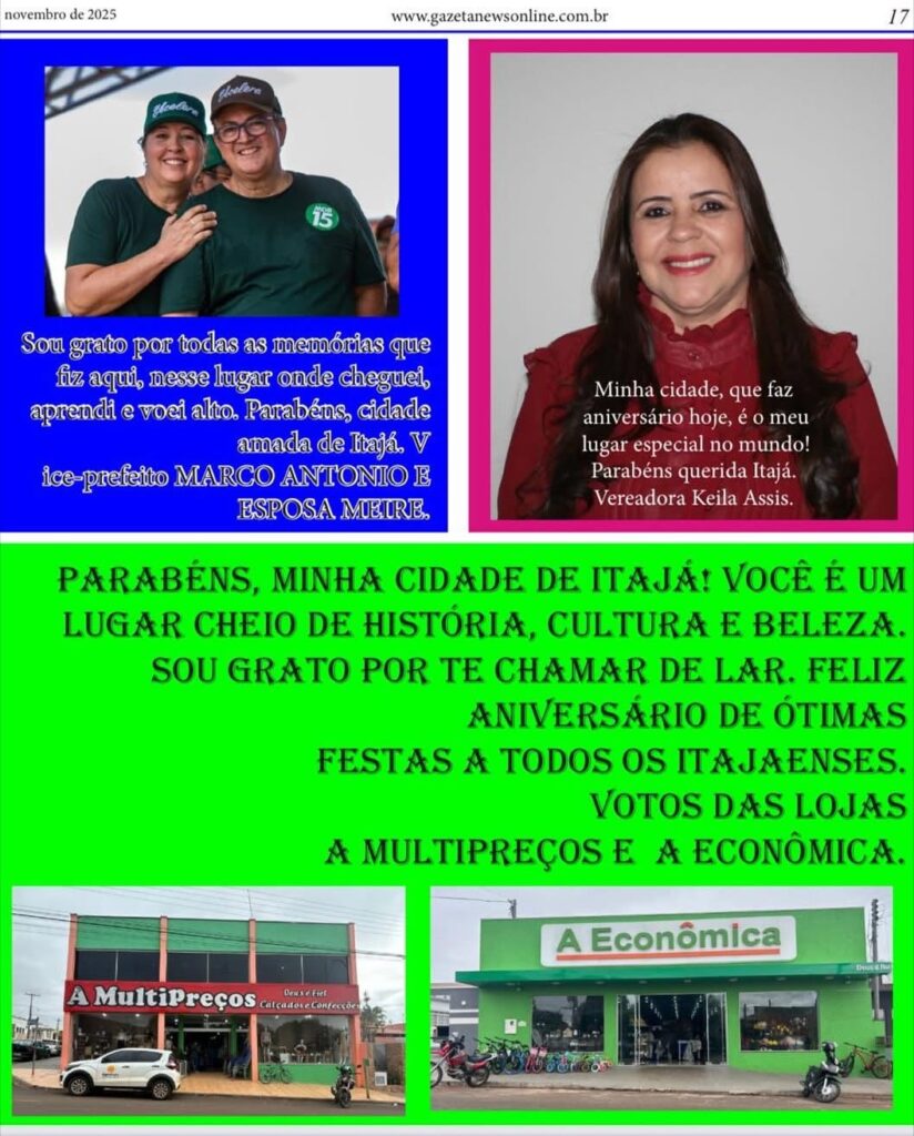 Em celebração ao aniversário de Aporé em Itajá Gazeta News preparou essa super edição especial digital e impressa com todo carinho e apoio das duas comunidades para saudar a sua gente e as cidades pela passagem de seus respectivos aniversários que se dá no dia de hoje. Parabéns Itajá e parabéns Aporé.