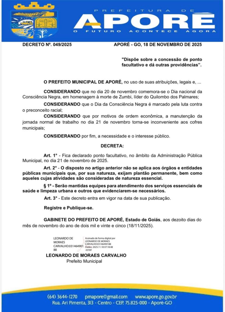 Dispõe sobre a concessão de ponto facultativo e dá outras providências.