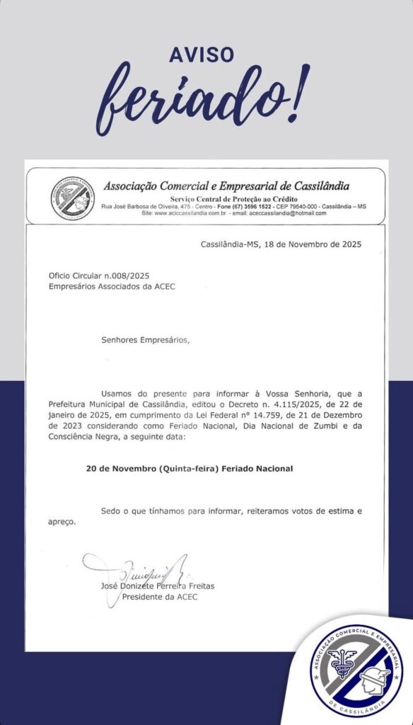 ASSOCIAÇÃO COMERCIAL E EMPRESARIAL INFORMA Gazeta 19/11/2025 Cassilândia - MS, Últimas Notícias Leave a comment 89 Views Related Articles PROMOÇÃO CENTER MIX 12 horas ago SEBRAE MS GOVERNO DO ESTADO E PREFEITURA LANÇAM PLANO DE DESENVOLVIMENTO MUNICIPAL EM CASSILÂNDIA 18 horas ago QUINTA DA BOA FORMA NA DROGA SOL 18 horas ago Screenshot Share Facebook Twitter Stumbleupon LinkedIn Pinterest