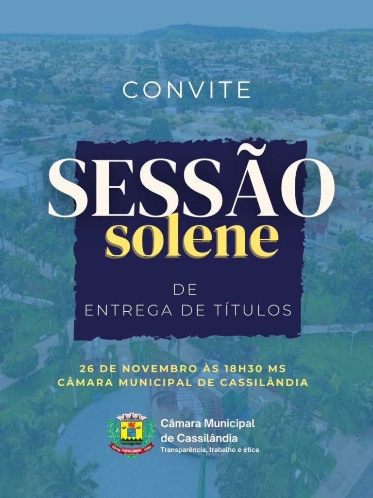 CÂMARA MUNICIPAL DE CASSILÂNDIA INFORMA SESSÃO Gazeta 26/11/2025 Cassilândia - MS, Últimas Notícias Leave a comment 79 Views Related Articles PREFEITURA MUNICIPAL DE CASSILÂNDIA INSTALA NOVAS PLACAS DE SINALIZAÇÃO NO SALTO DO RIO APORÉ 23 horas ago CAMPANHA DO AGASALHO EM APORÉ 23 horas ago GRANDE CAVALGADA EM APARECIDA DO TABOADO 23 horas ago Share Facebook Twitter Stumbleupon LinkedIn Pinterest