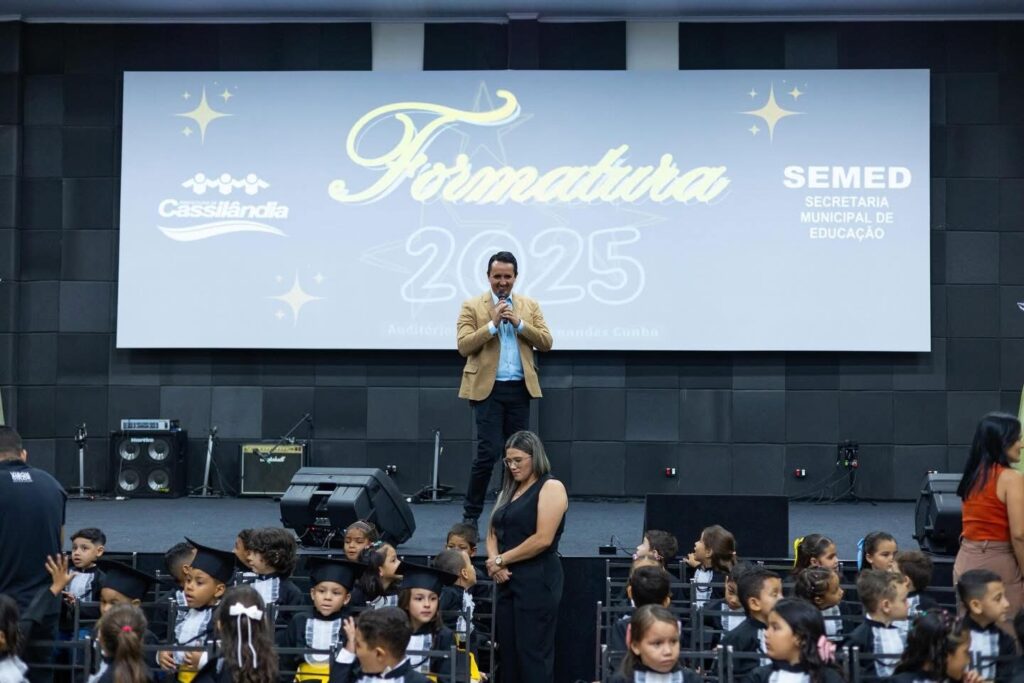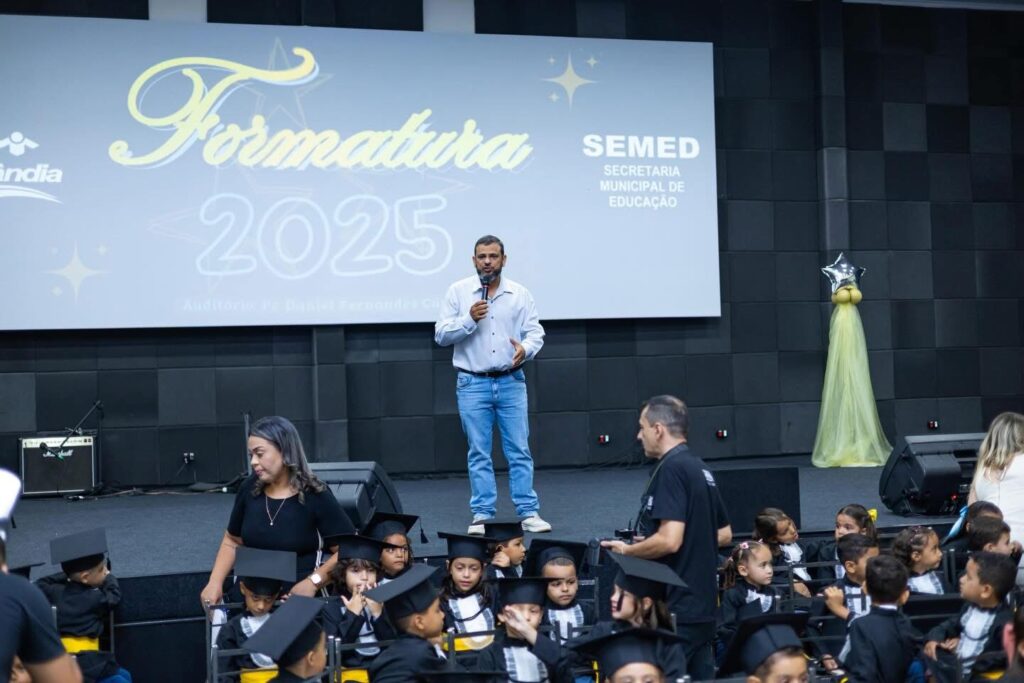 Na terceira noite de festividades em comemoração às crianças, a Secretaria Municipal de Educação (SEMED), em parceria com os CMEIs Juracy Lucas e Maria Parreira Leal, teve a honra de realizar a formatura da Turma 2025, intitulada “Estrelas em Cena”.