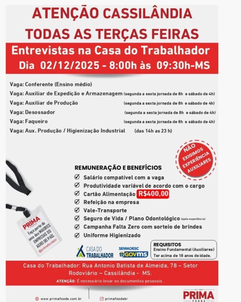 ATENÇÃO CASSILÂNDIA ENTREVISTAS CASA DO TRABALHADOR Gazeta 29/11/2025 Cassilândia - MS, Últimas Notícias Leave a comment 48 Views Related Articles MÊS DO CONSUMIDOR NO SUPERMERCADO MASTER LOJAS 1 E 2 17 horas ago OFERTAS DIA DA MULHER NO SUPERMERCADO REZENDE 17 horas ago 1° PAGODE COM FEIJOADA EM LAGOA SANTA 17 horas ago Share Facebook Twitter Stumbleupon LinkedIn Pinterest