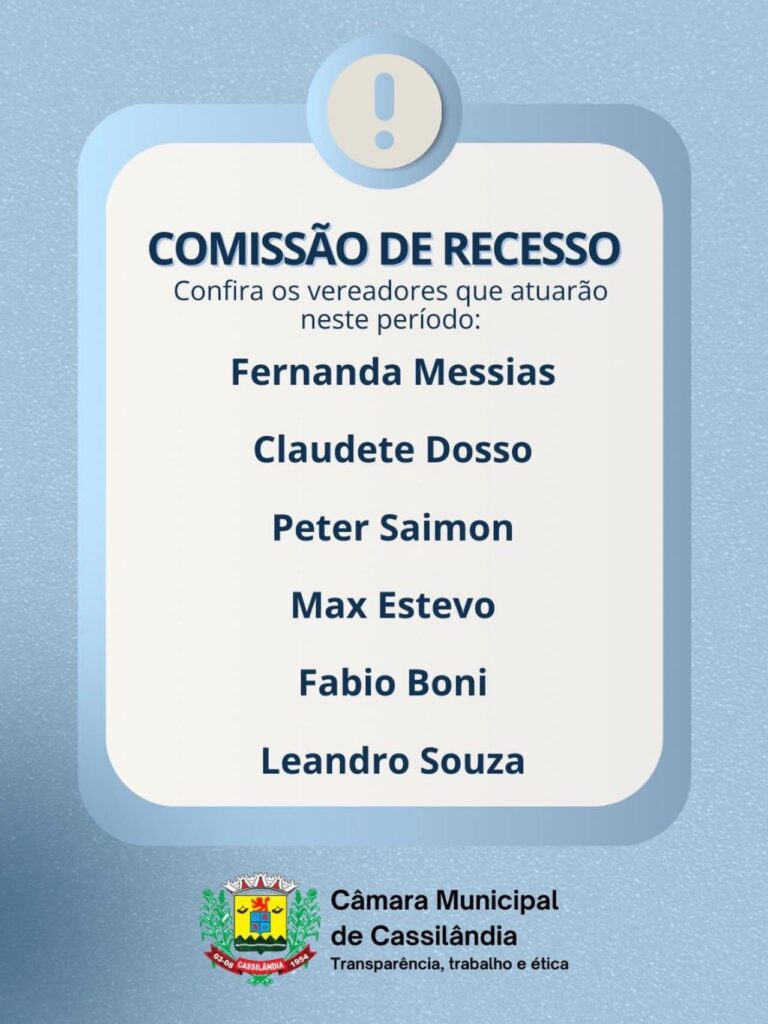 CÂMARA MUNICIPAL DE CASSILÂNDIA INFORMA COMISSÃO DE RECESSO PARLAMENTAR DO LEGISLATIVO Gazeta 01/12/2025 Cassilândia - MS, Últimas Notícias Leave a comment 108 Views Related Articles PROMOÇÃO CENTER MIX 6 horas ago SEBRAE MS GOVERNO DO ESTADO E PREFEITURA LANÇAM PLANO DE DESENVOLVIMENTO MUNICIPAL EM CASSILÂNDIA 12 horas ago QUINTA DA BOA FORMA NA DROGA SOL 12 horas ago Share Facebook Twitter Stumbleupon LinkedIn Pinterest