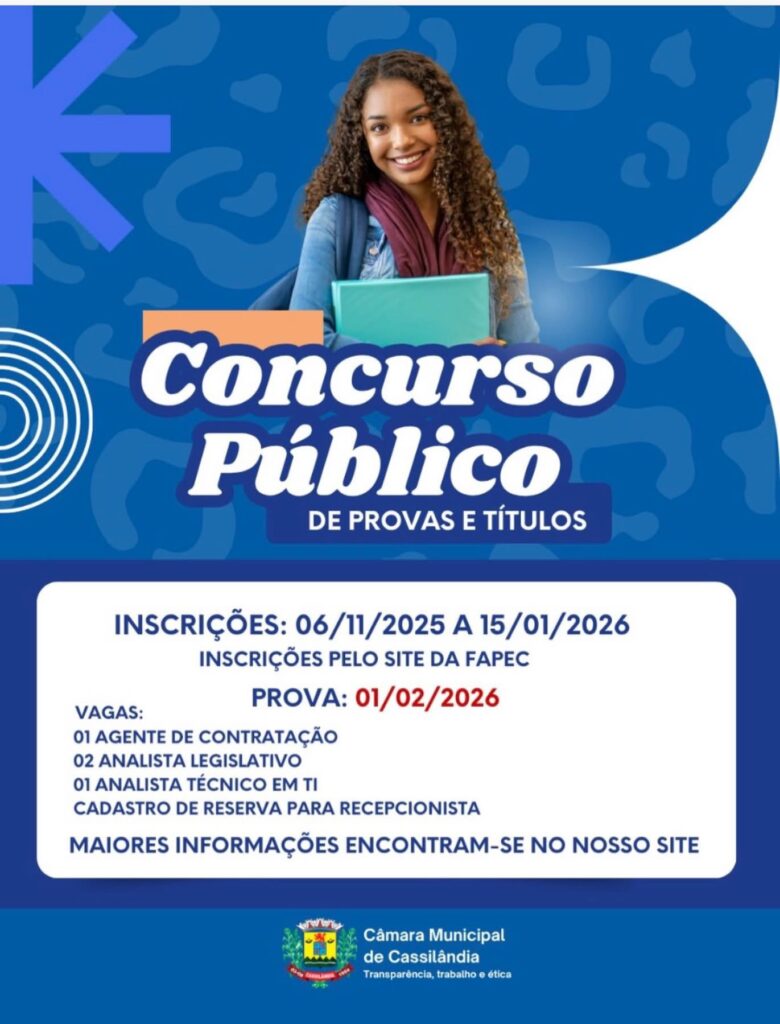 CÂMARA MUNICIPAL DE CASSILÂNDIA INFORMA INSCRIÇÕES DE CONCURSO PÚBLICO Gazeta 04/12/2025 Cassilândia - MS, Últimas Notícias Leave a comment 70 Views Related Articles Balneário Salto do Rio Aporé vira palco de grandes disputas no motocross e atrai pilotos de três estados 14 horas ago CASA DO TRABALHADOR INFORMA VAGAS DE EMPREGO 18 horas ago DIA INTERNACIONAL DA MULHER TEM DATA ADIADA EM LAGOA SANTA 18 horas ago Share Facebook Twitter Stumbleupon LinkedIn Pinterest