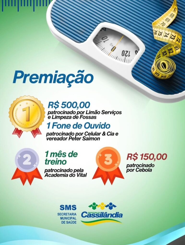 A Prefeitura de Cassilândia, por meio da Secretaria de Administração e Planejamento; Secretaria Municipal de Saúde; e Secretaria de Turismo, Esporte e Cultura, realiza neste sábado o encerramento do Servidor Mais Ativo, com a divulgação oficial dos vencedores do Desafio de Emagrecimento.