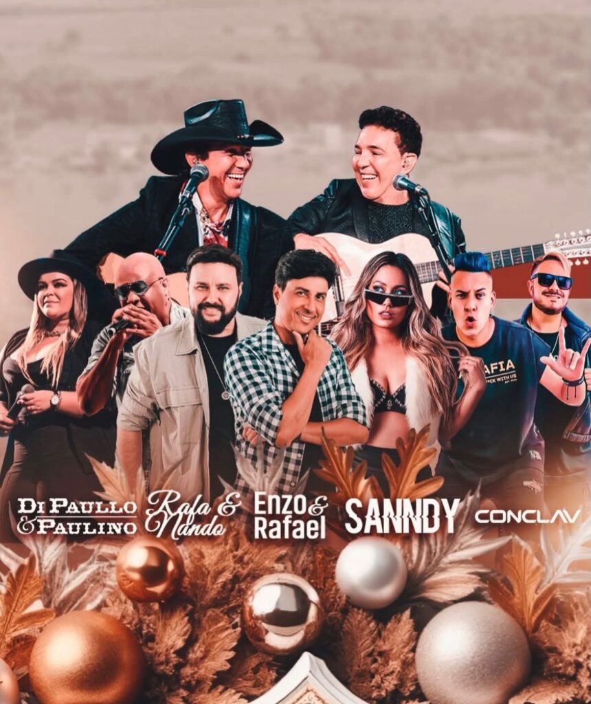 Dias 30 e 31 de dezembro, no Lago Municipal Clarito Pereira Campos, com shows de Di Paulo & Paulinho, Rafa & Nando, DJ Sandy, Enzo & Rafael e Projeto Conclave.
