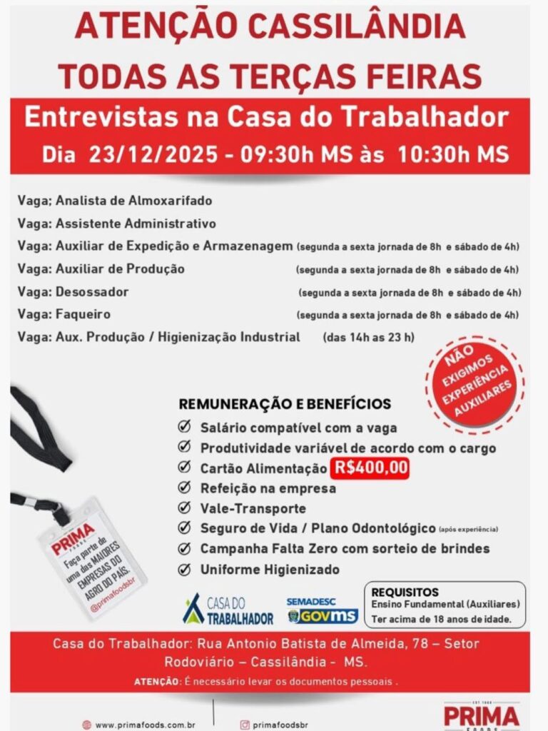 ENTREVISTA NA CASA DO TRABALHADOR HOJE EM CASSILÂNDIA Gazeta 23/12/2025 Cassilândia - MS, Últimas Notícias Leave a comment 66 Views Related Articles PROMOÇÃO CENTER MIX 4 horas ago SEBRAE MS GOVERNO DO ESTADO E PREFEITURA LANÇAM PLANO DE DESENVOLVIMENTO MUNICIPAL EM CASSILÂNDIA 11 horas ago QUINTA DA BOA FORMA NA DROGA SOL 11 horas ago Share Facebook Twitter Stumbleupon LinkedIn Pinterest