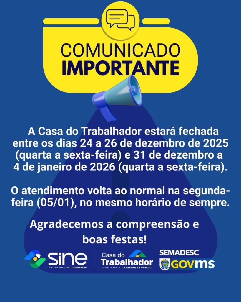 CASA DO TRABALHADOR INFORMA RECESSO Gazeta 24/12/2025 Cassilândia - MS, Últimas Notícias Leave a comment 59 Views Related Articles CASSILÂNDIA APRESENTA PLANO DE DESENVOLVIMENTO MUNICIPAL COM FOCO EM CRESCIMENTO SUSTENTÁVEL E PARTICIPAÇÃO COLETIVA 23 horas ago PROMOÇÃO LOJA CENTER MIX 1 dia ago SEXTA DA BELEZA NA DROGA SOL 1 dia ago Share Facebook Twitter Stumbleupon LinkedIn Pinterest