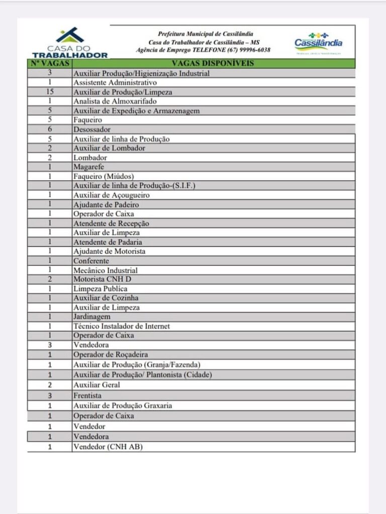 CASA DO TRABALHADOR INFORMA VAGAS DE EMPREGO Gazeta 08/01/2026 Cassilândia - MS, Últimas Notícias Leave a comment 51 Views Related Articles PROMOÇÃO LOJA CENTER MIX 30 minutos ago SEXTA DA BELEZA NA DROGA SOL 32 minutos ago PROMOÇÃO DE FIM DE SEMANA NO SUPERMERCADO MASTER LOJAS 1 E 2 1 hora ago Share Facebook Twitter Stumbleupon LinkedIn Pinterest