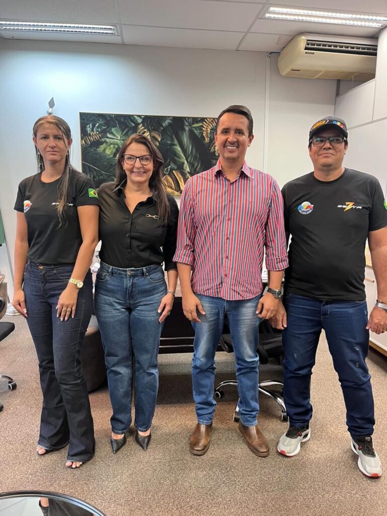 Na foto – Prefeito Rodrigo Freitas, a vice prefeita e secretária SETESC Sumara Leal, Quelle e Uarlei, do time MTM Brasil