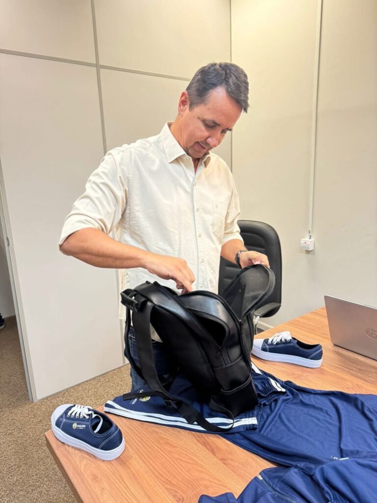 “Bom dia. Nós vamos estar investindo pesado na Educação. Já vamos começar o ano com novos kits de uniformes escolares completos”, afirmou o prefeito. Pela primeira vez na história do município, os estudantes receberão tênis, além de mochila escolar, garantindo ainda mais dignidade e igualdade para as crianças.