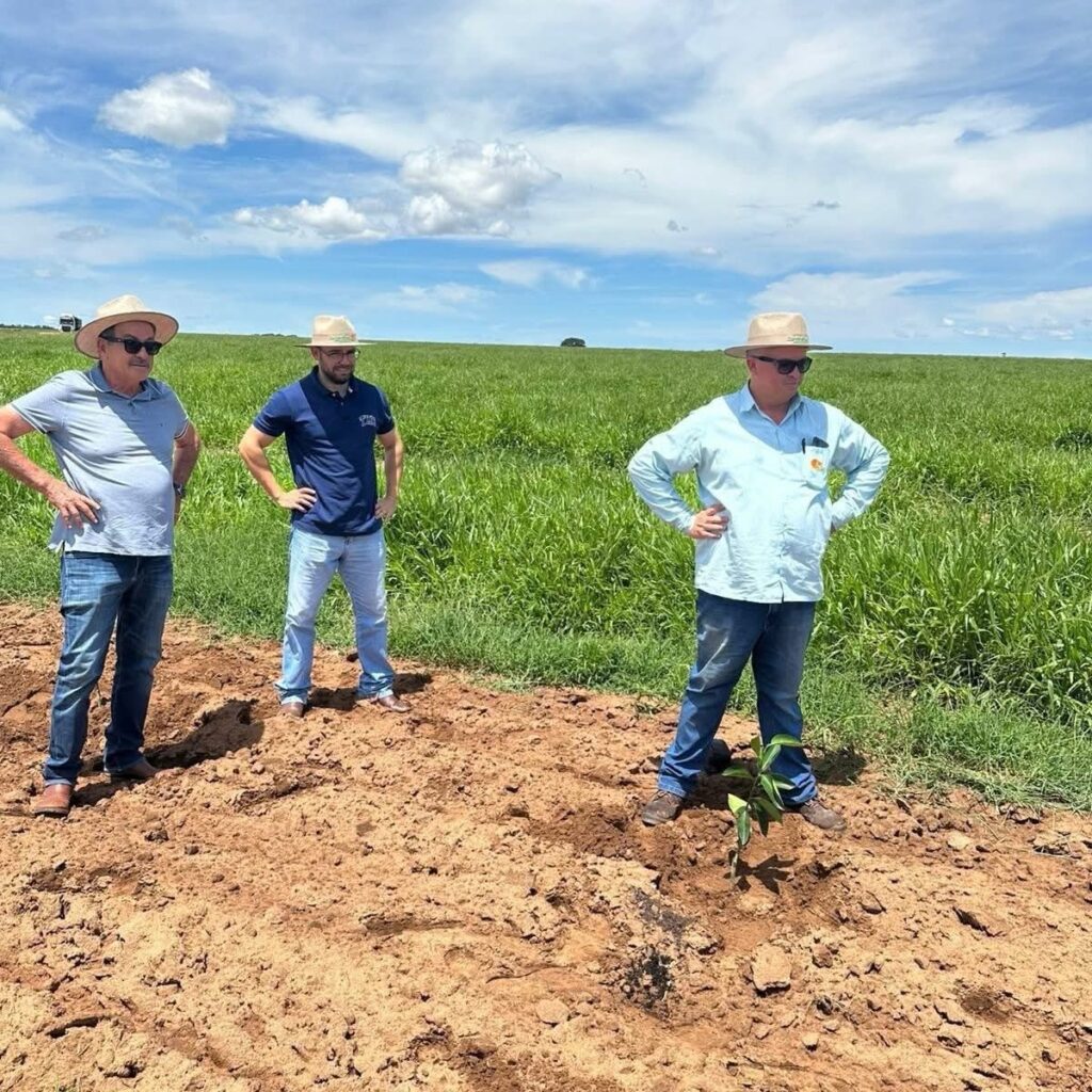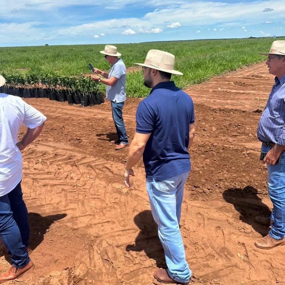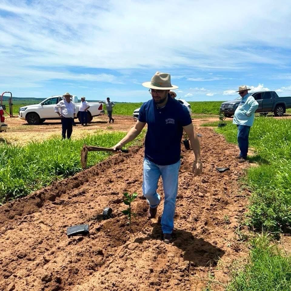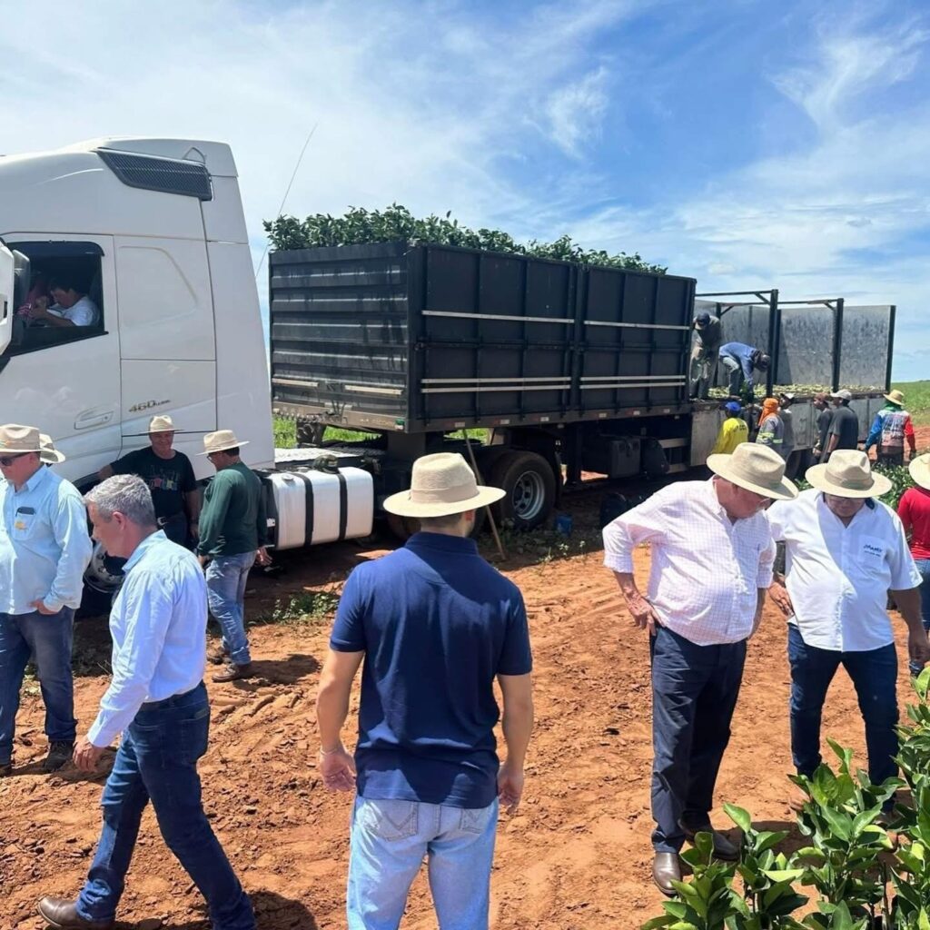 Ontem o prefeito de Aporé Leonardo Carvalho esteve presente no início oficial do plantio de laranja na Fazenda Santa Maria, da empresa Frucamp.