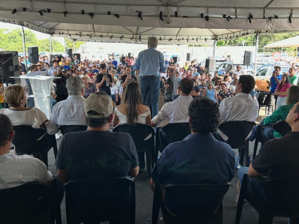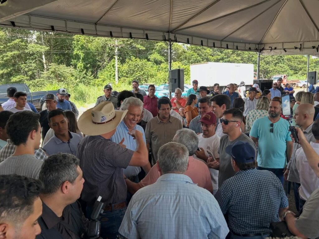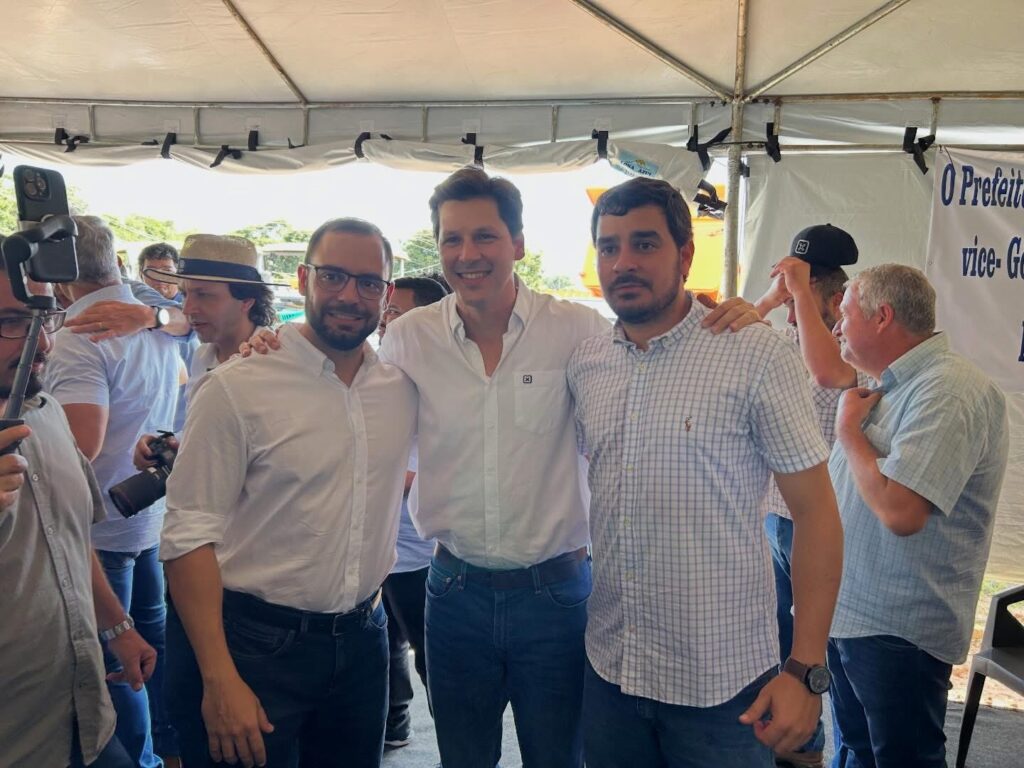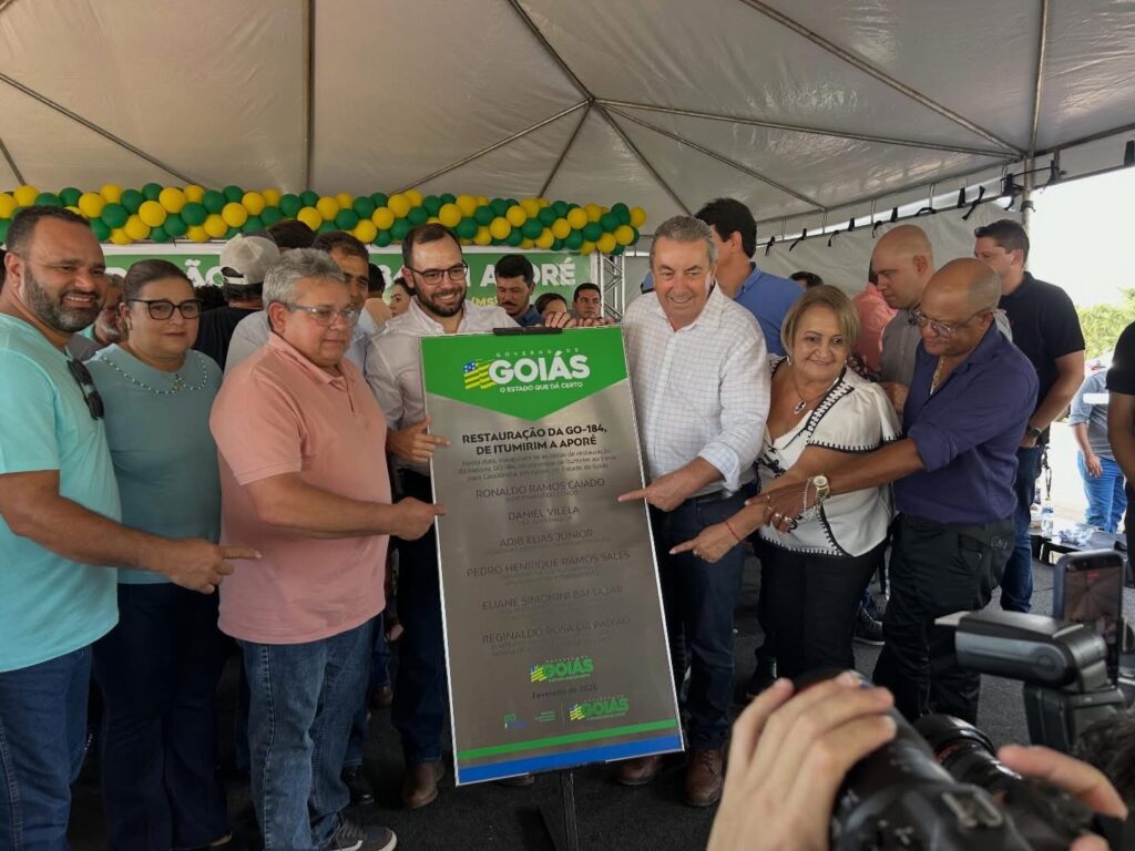 O governador do estado Ronaldo Caiado esteve ontem a Aporé acompanhado do vice-governador Daniel Vilela e comitiva. A visita foi para inaugurar oficialmente a restauração GOS 184 e 302. Estas importantes rodovias cortam o sudoeste de Goiás e são muito importante para um progresso de desenvolvimento da região. Foram mais de 90 km de reconstrução que custaram os cofres do estado mais de 300 milhões de reais, segundo o próprio governador. O trecho que recebeu este benefício vai do Distrito de Iumirim em Aporé até o trevo que liga a cidade de Cassilândia Mato Grosso do Sul. Estiveram presentes ao local além do governador e a comitiva o prefeito Leonardo Carvalho, a primeira dama Geovana, a presidente da Câmara Cláudia do Povo, vereadores Aporé, prefeitos de toda região, lideranças políticas locais e regionais, secretários da atual administração além da comunidade local. A solenidade aconteceu no alojamento da empresa CCL responsável pelas obras, com início às 15h00 horas. Veja alguns fleches colhidos pela nossa reportagem na tarde de ontem.