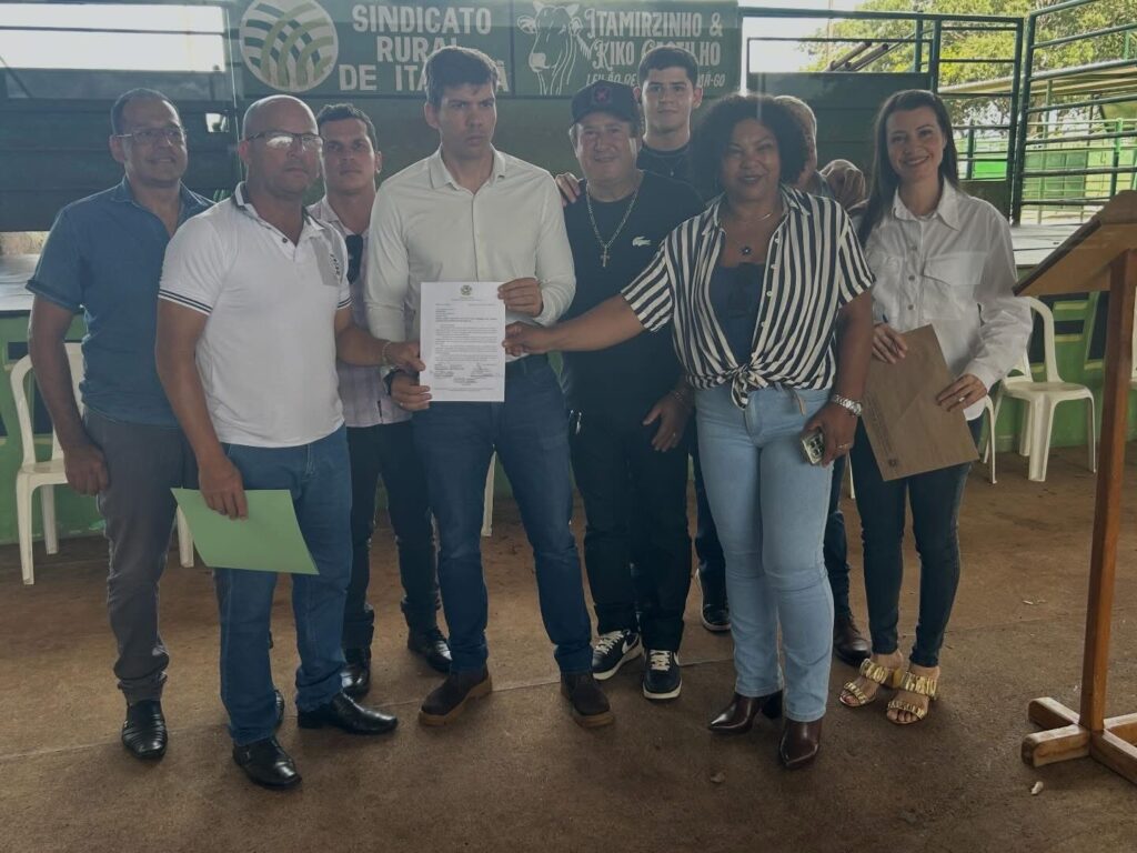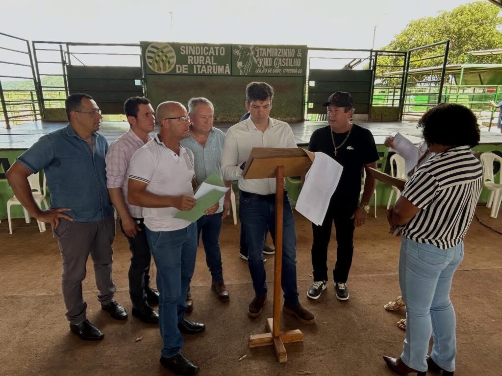 O prefeito Adivair Lagoa Santa Adivair de Macedo, o presidente da Câmara Marcelo do Reis, vereadores Nelo e Lindomar, vereadoras Cida e Claudia, secretário de administração Luciano Garcia e o jovem Adivair Filho. Marcaram presença em Itarumã ontem, no lande obras realizado pelo presidente da Goinfra, Pedro Sales. O prefeito juntamente com vereadores foram solicitar a reconstrução da GO 302 que liga Itajá a cidade de Lagoa Santa.