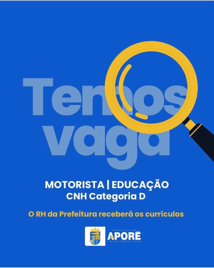 VAGA DE EMPREGO NA PREFEITURA MUNICIPAL DE APORÉ Gazeta 2 semanas ago Aporé - GO, Últimas Notícias Leave a comment 65 Views Related Articles SEBRAE MS GOVERNO DO ESTADO E PREFEITURA LANÇAM PLANO DE DESENVOLVIMENTO MUNICIPAL EM CASSILÂNDIA 3 horas ago QUINTA DA BOA FORMA NA DROGA SOL 3 horas ago QUINTA MALUCA NO SUPERMERCADO REZENDE 3 horas ago Temos vaga! A Prefeitura de Aporé está recebendo currículos para Motorista | Educação (com CNH categoria D).Entregue seu currículo no RH e não perca essaoportunidade!Prefeitura Municipal de Aporé.Gestão 2025/2028. Share Facebook Twitter Stumbleupon LinkedIn Pinterest