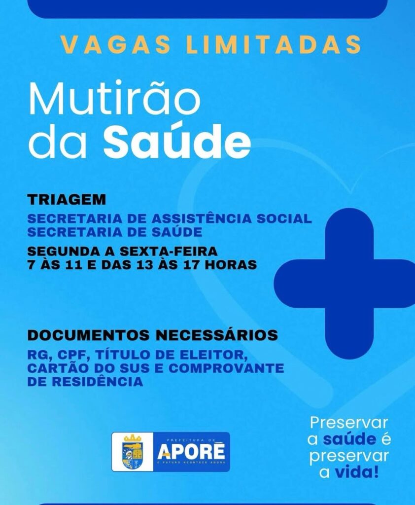A Prefeitura informa que a triagem para o Mutirão da Saúde será realizada previamente ao evento.