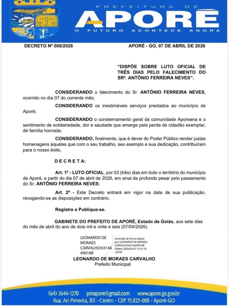 DECRETO DA PREFEITURA MUNICIPAL DE APORÉ Gazeta 2 semanas ago Aporé - GO, Últimas Notícias Leave a comment 65 Views Related Articles SEBRAE MS GOVERNO DO ESTADO E PREFEITURA LANÇAM PLANO DE DESENVOLVIMENTO MUNICIPAL EM CASSILÂNDIA 5 horas ago QUINTA DA BOA FORMA NA DROGA SOL 5 horas ago QUINTA MALUCA NO SUPERMERCADO REZENDE 5 horas ago V DECRETO N° 007/2026.DISPÕE SOBRE LUTO OFICIAL DE TRÊS DIASPELO FALECIMENTO DO SR°. ANTÔNIO FERREIRANEVES.Prefeitura Municipal de Aporé.Gestão 2025/2028. Share Facebook Twitter Stumbleupon LinkedIn Pinterest